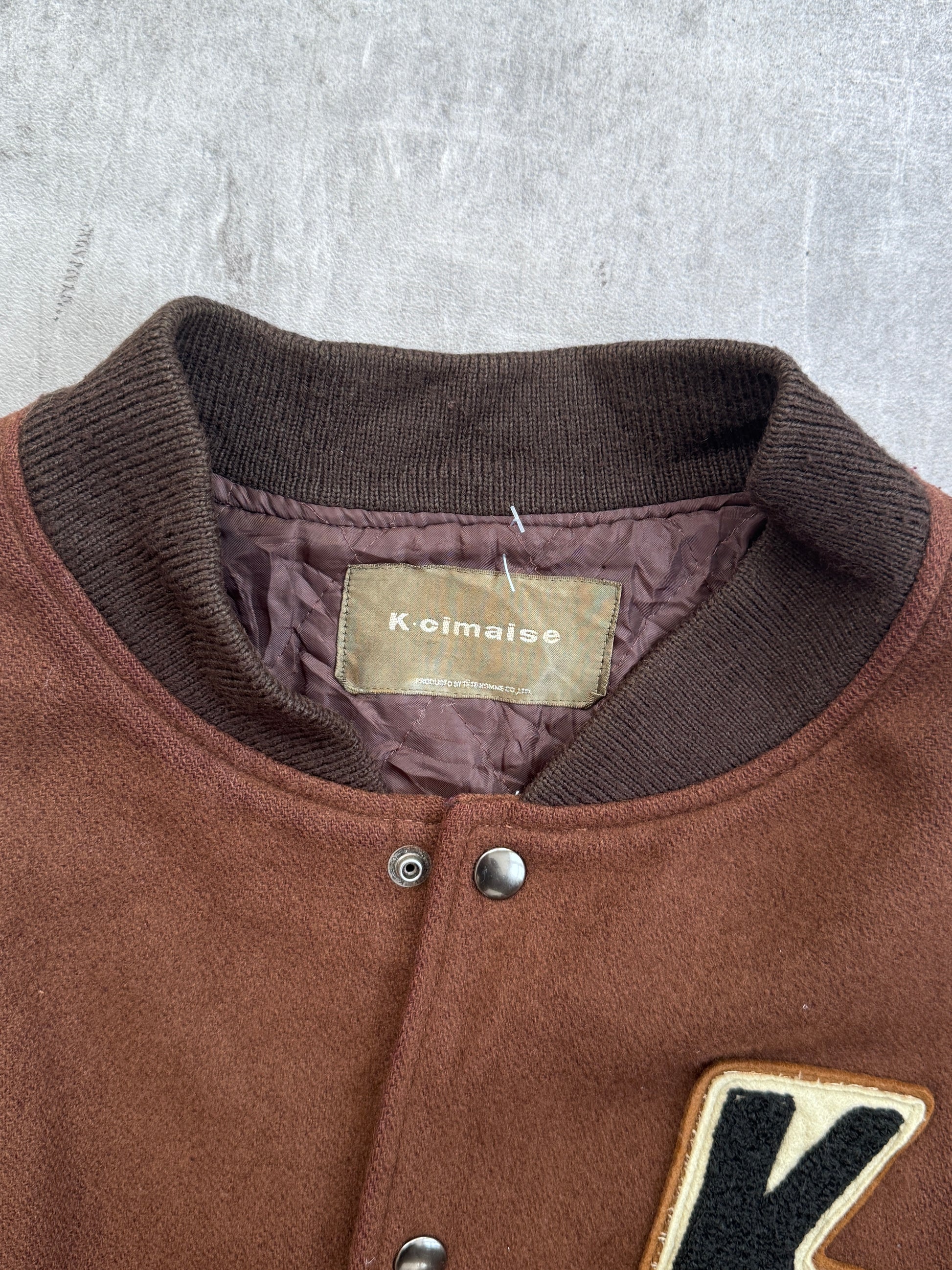 A distinctive piece blending retro sportswear with refined Japanese craftsmanship, this Tete Homme K-Cimaise Varsity Bomber Jacket captures the brand’s penchant for reinterpreting classic silhouettes with luxurious materials and bold design details.