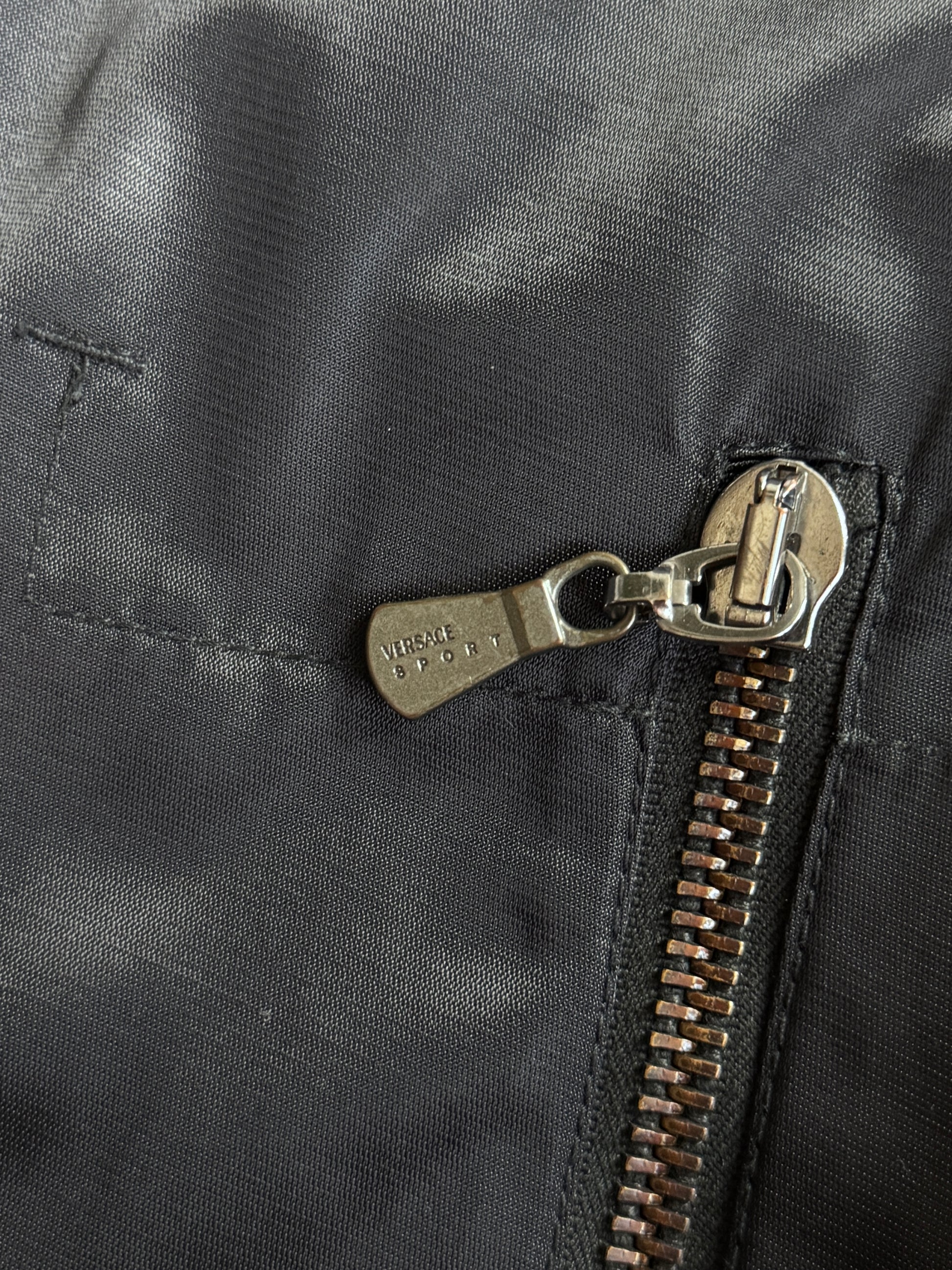 This Versace Sport Cropped Fur Collar Blouson perfectly captures late-90s Versace glamour reimagined through a utility lens. Crafted in jet black nylon with a sumptuous faux fur collar, this cropped bomber-style jacket features multiple zipped pockets, matte hardware, and embossed tonal detailing at the sleeve — a subtle nod to the house’s opulent aesthetic. Balancing luxury and edge, this jacket fuses functionality with unmistakable Versace attitude, ideal for transitional layering or as a bold street-luxe statement.
