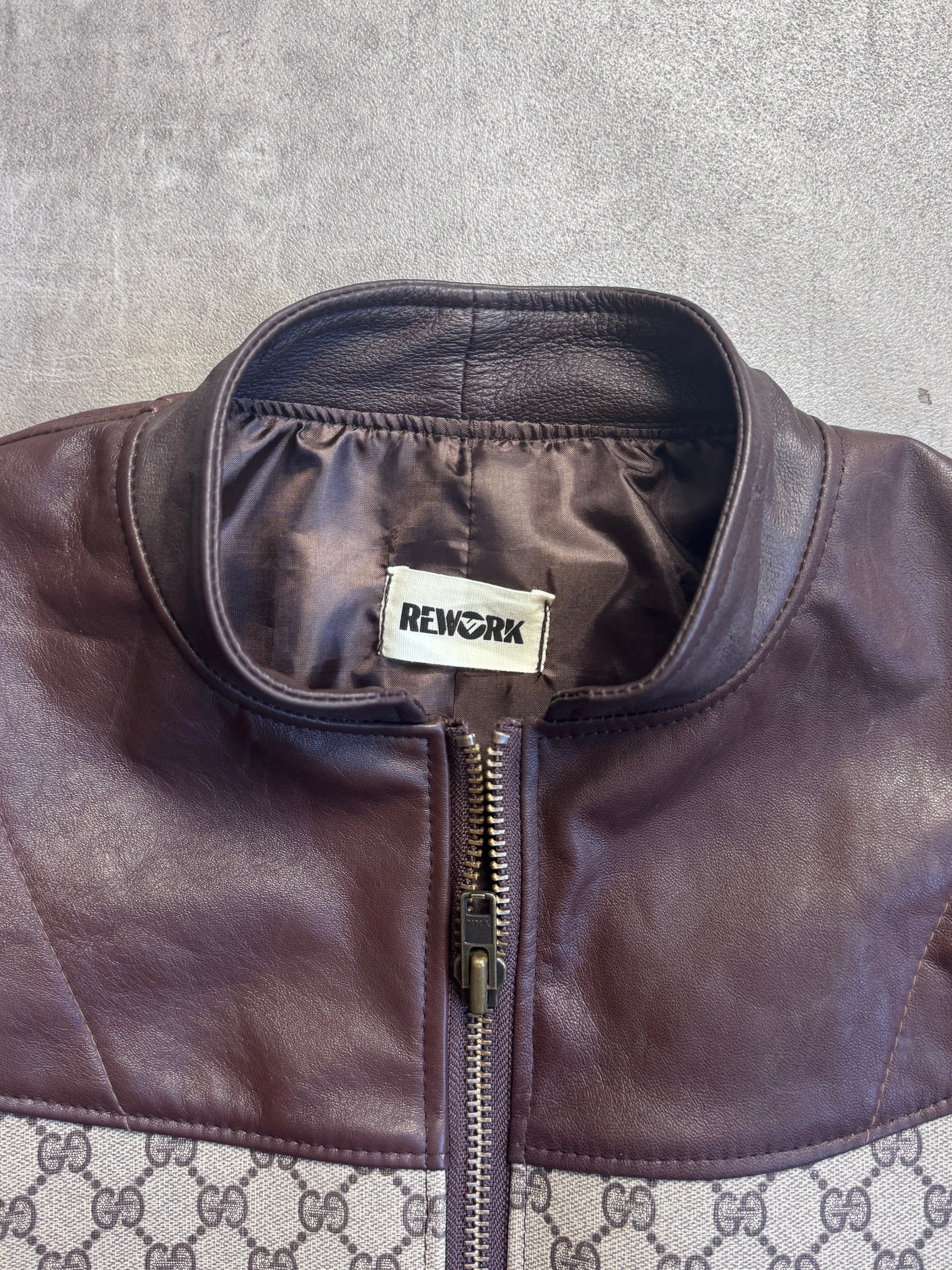 A one-of-one VT Rework statement piece, this Gucci monogram leather cropped jacket features a bold boxy silhouette in rich brown leather, finished with standout Gucci monogram detailing. Designed with a sharp cropped cut and structured proportions, it’s the perfect blend of luxury archive energy and modern styling — elevated, wearable, and built to stand out.