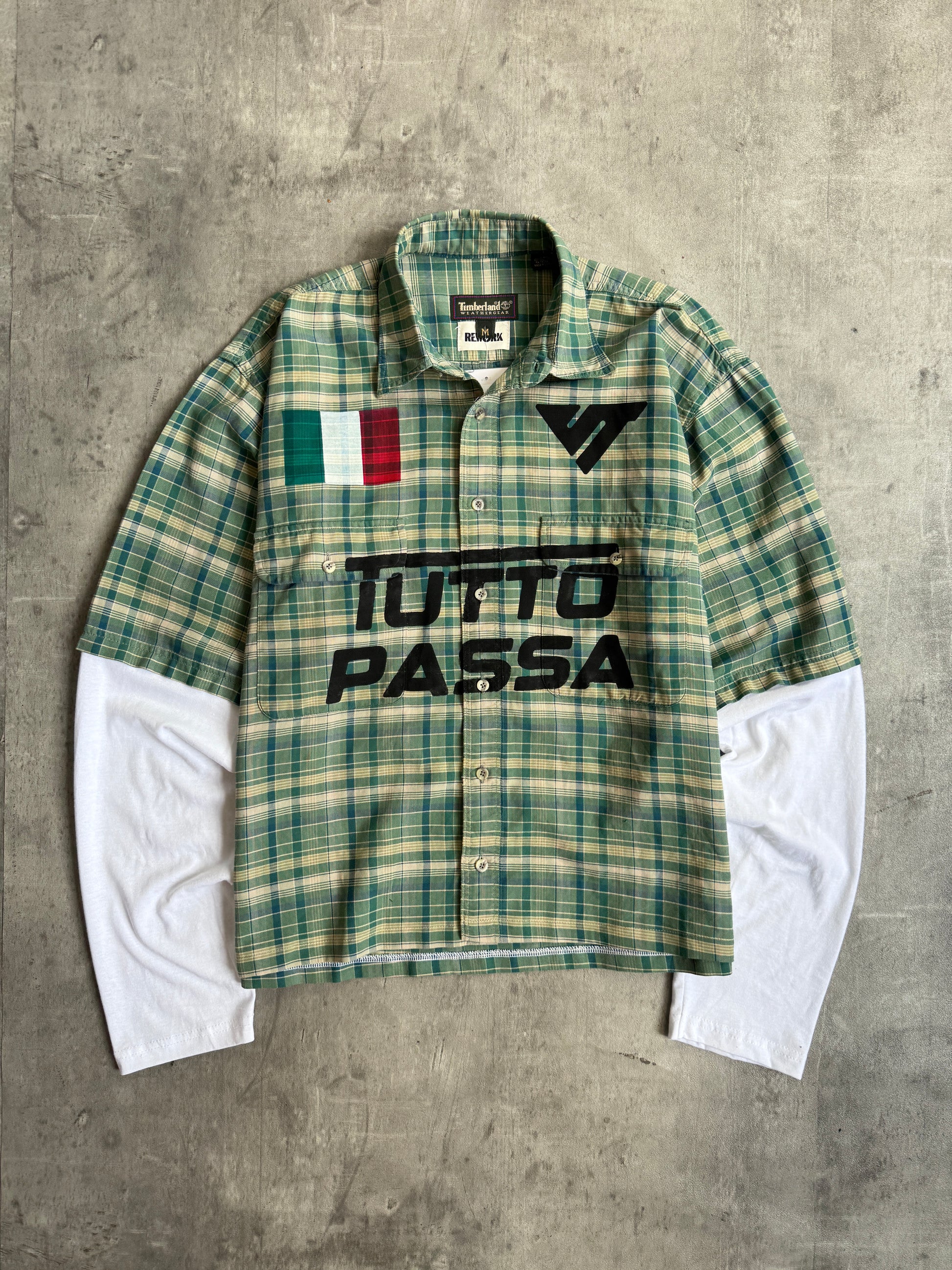 VT Rework : Tutto Passa Check Cropped Reworked Green Shirt