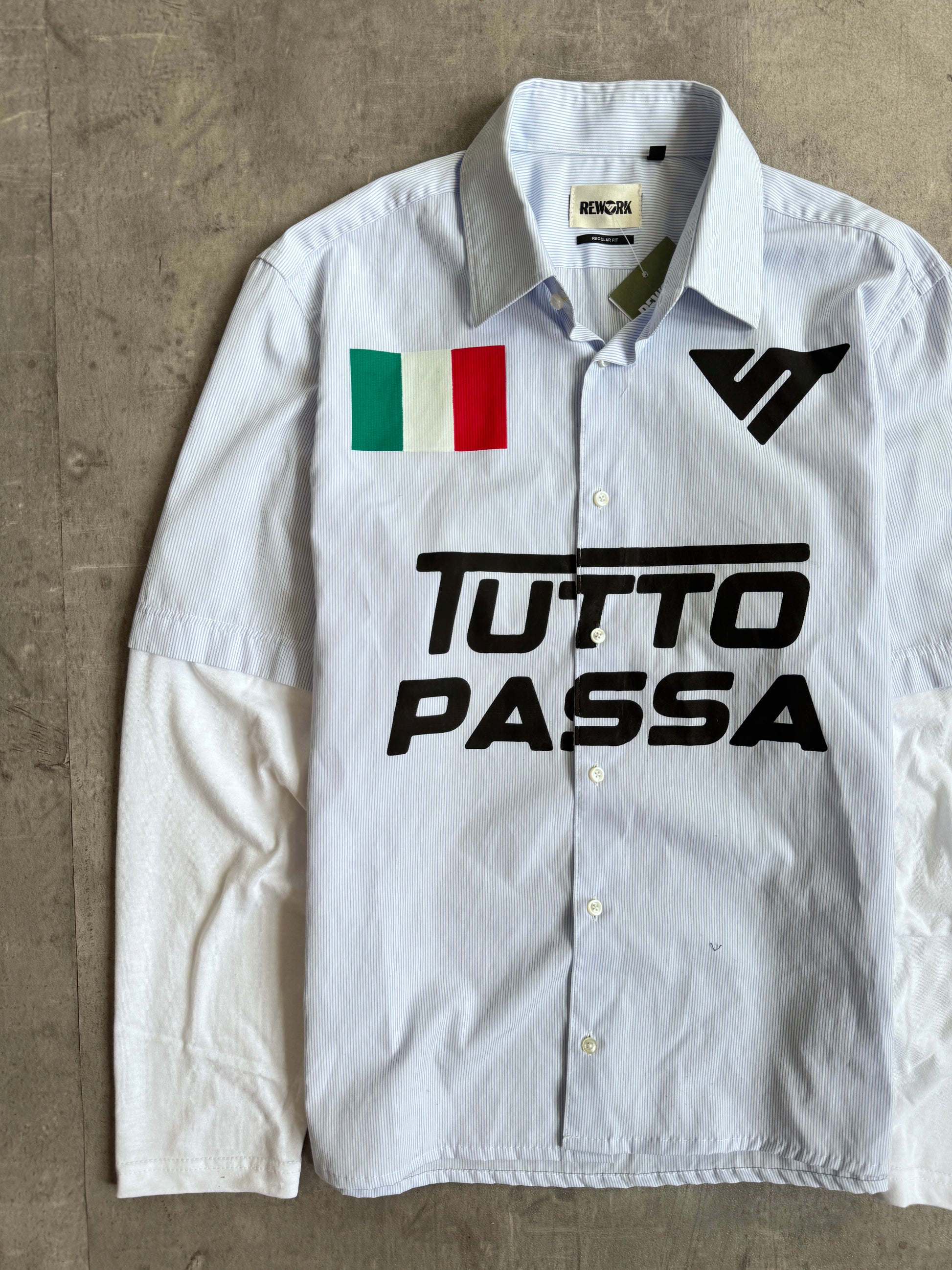 VT Rework : Tutto Passa Pinstripe Reworked Shirt