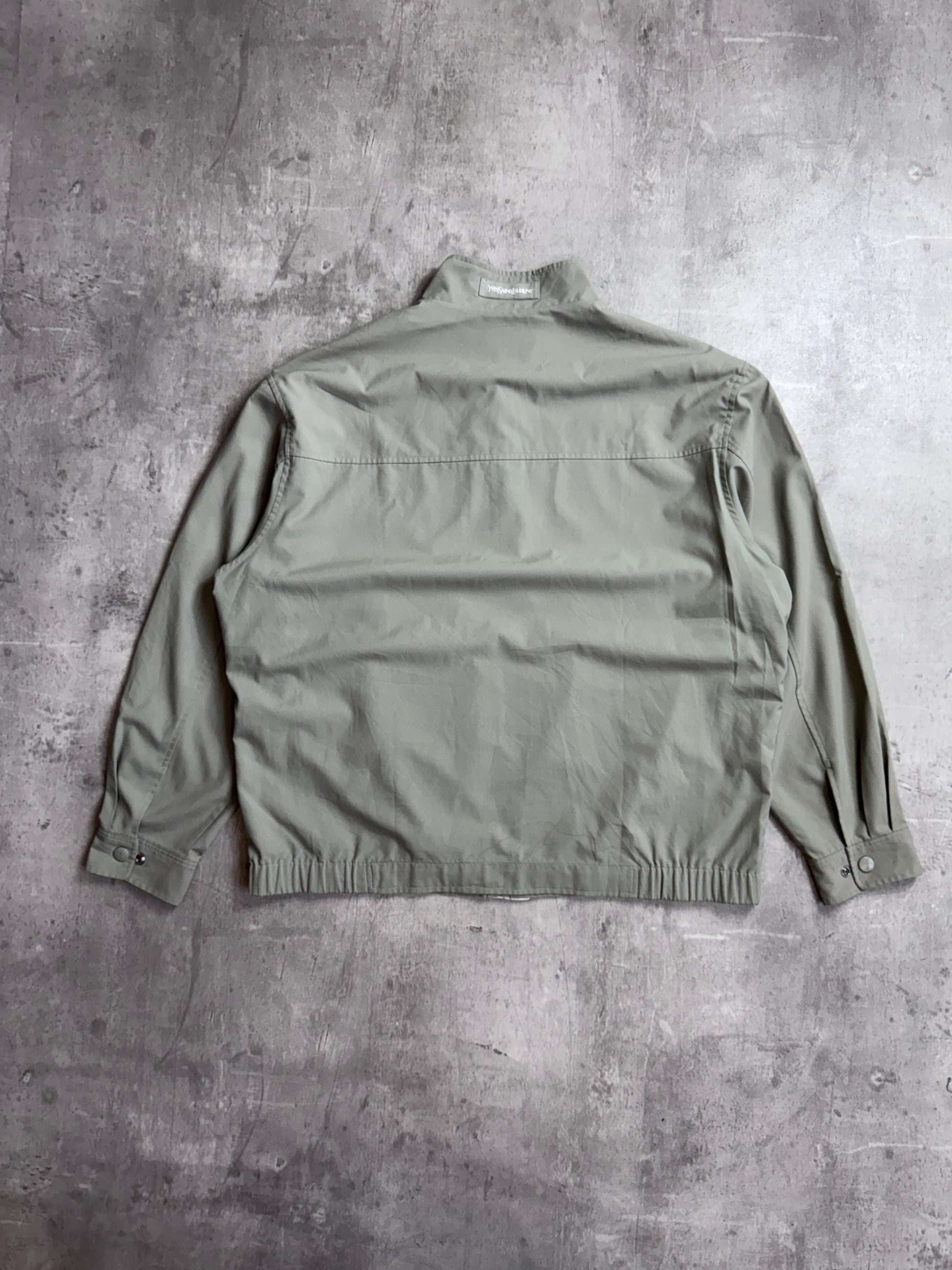 Effortlessly understated and immaculately cut, this YSL Grey-Green Lightweight Embroidered Blouson embodies the refined casualwear that defined Yves Saint Laurent’s menswear collections. Crafted from smooth, lightweight cotton-blend fabric, the piece features a tonal embroidered YSL chest logo, concealed zip and button fastening, and an elasticated hem for a subtle, structured fit. The muted grey-green hue gives the jacket a timeless, versatile edge, perfect for transitional layering and everyday wear with a distinctly Parisian touch.