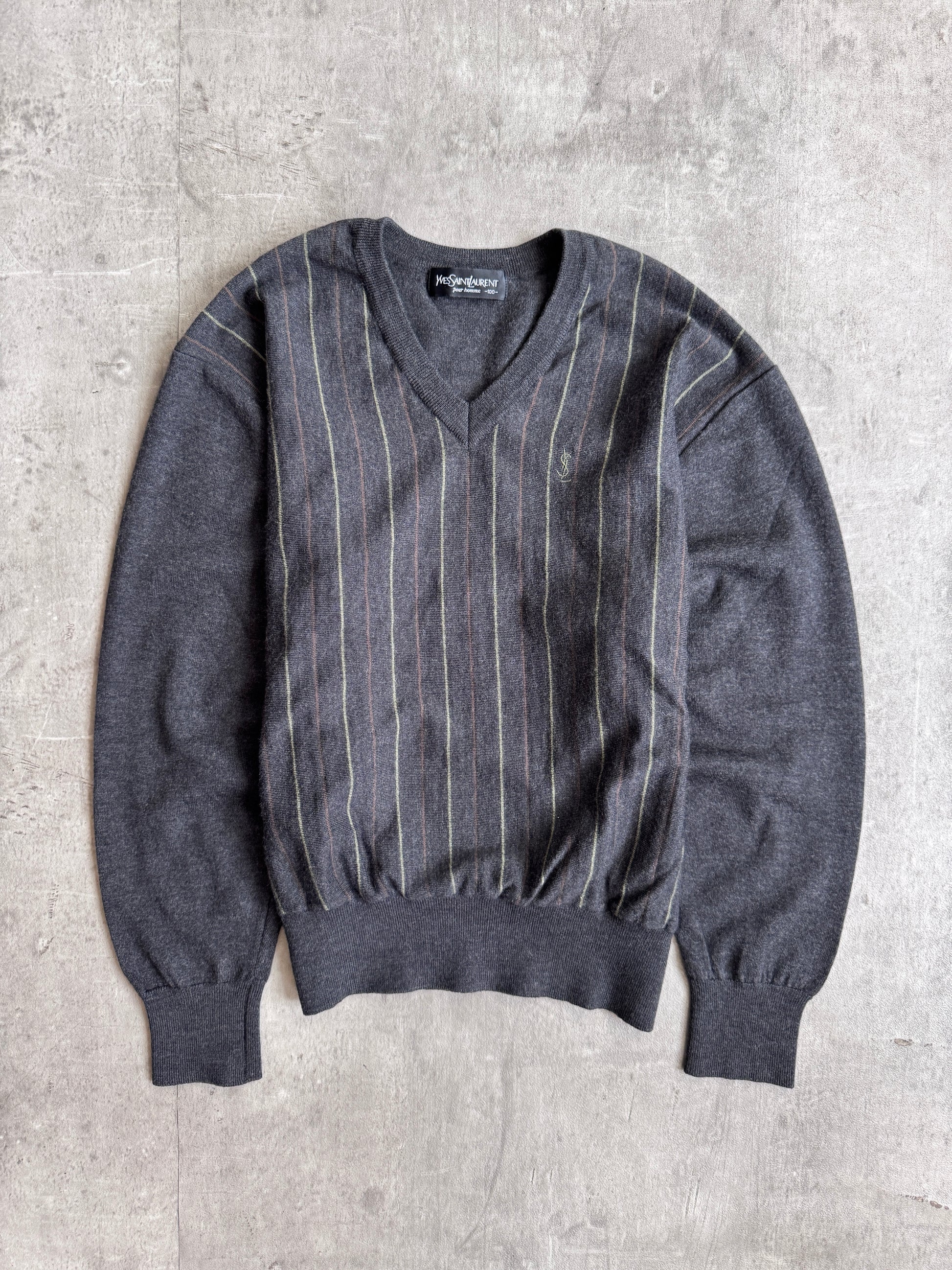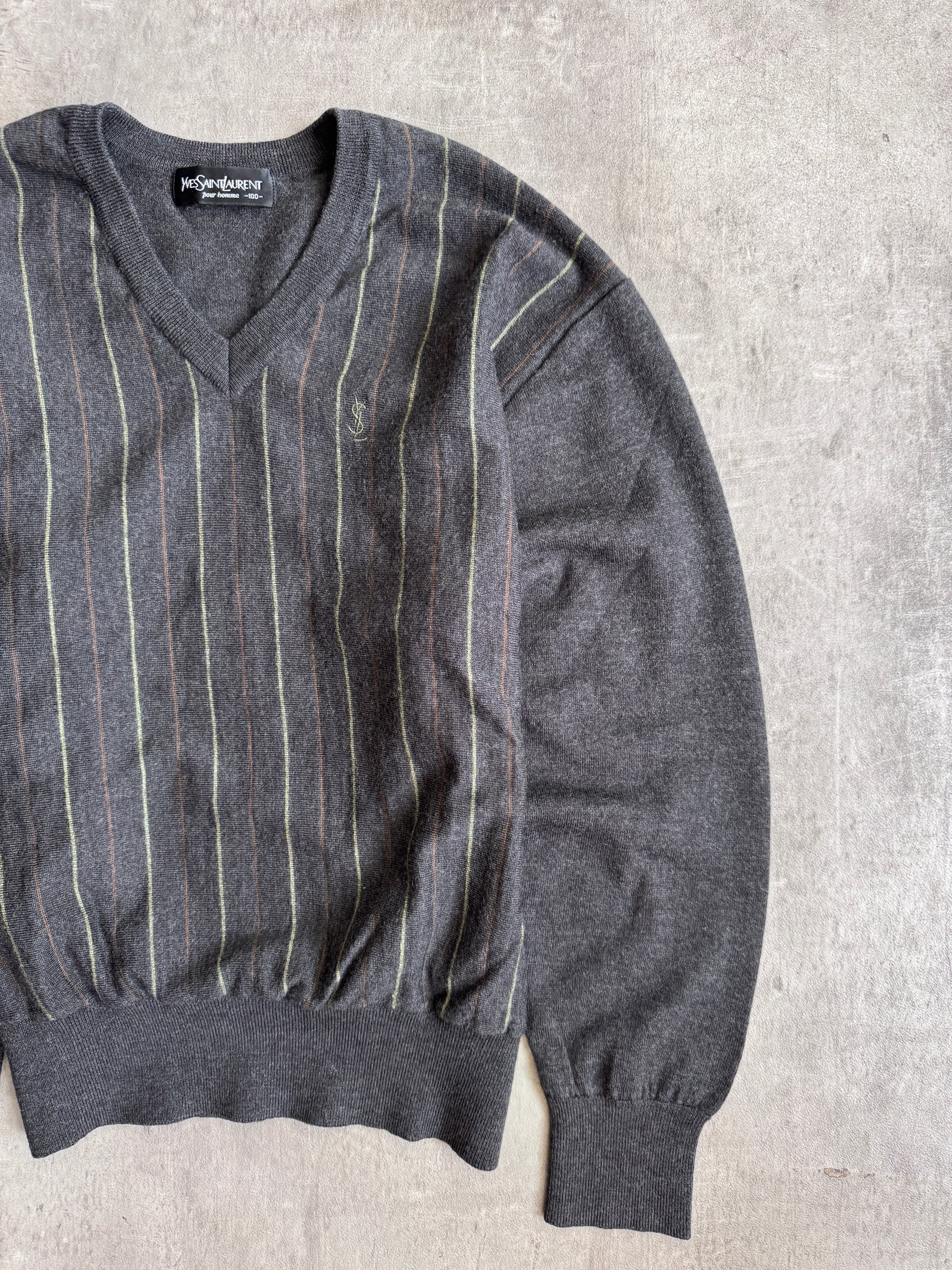 YSL Grey Stripe V Neck Sweater